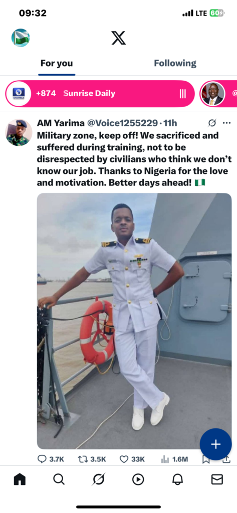 In a tweet, Yerima wrote, “Military zone, keep off! We sacrificed and suffered during training, not to be disrespected by civilians who think we don’t know our job. Thanks to Nigeria for the love and motivation”.
